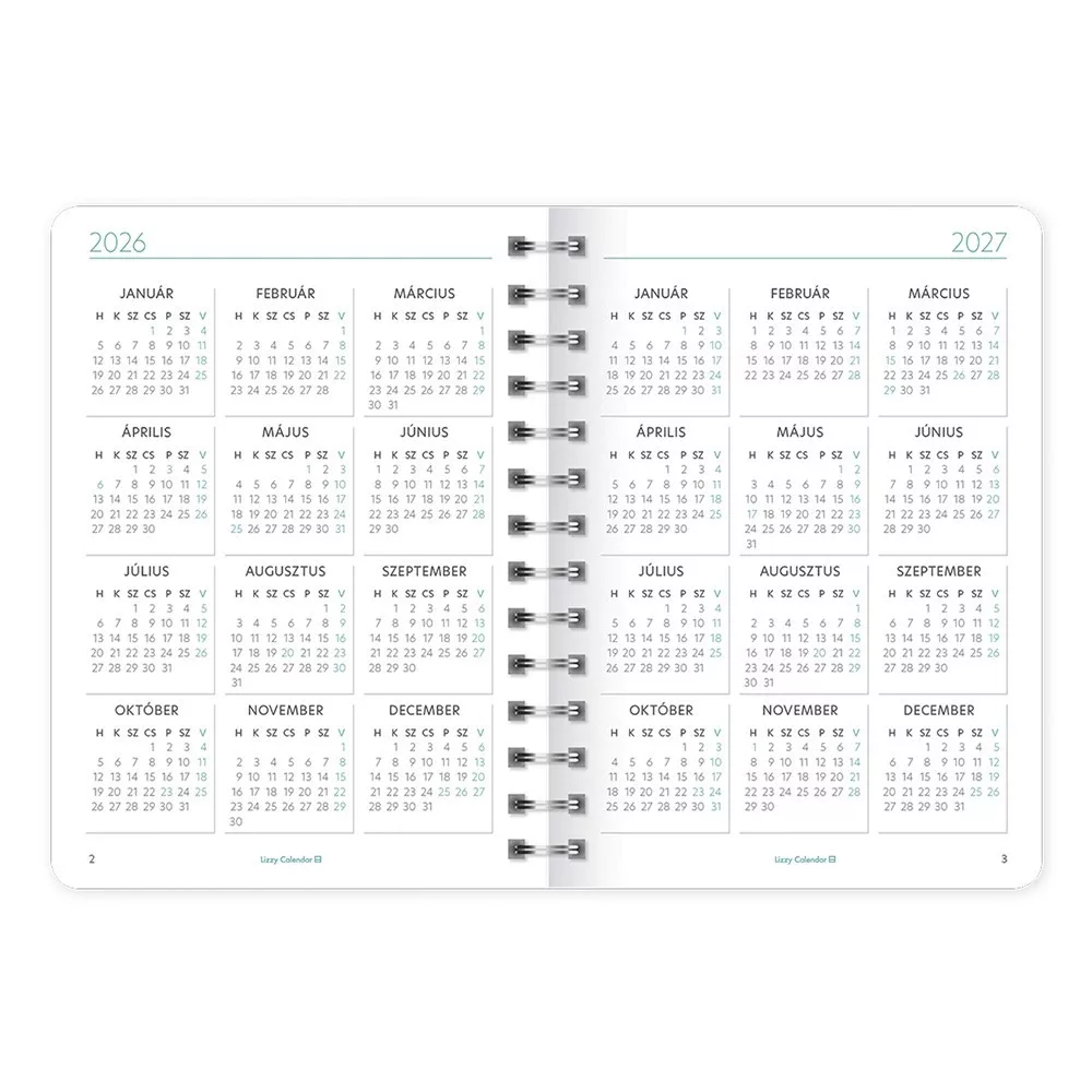 B6 méretű, spirálozott, gumipántos, heti tervező naptár, matrica oldallal, 128 +2 oldal,